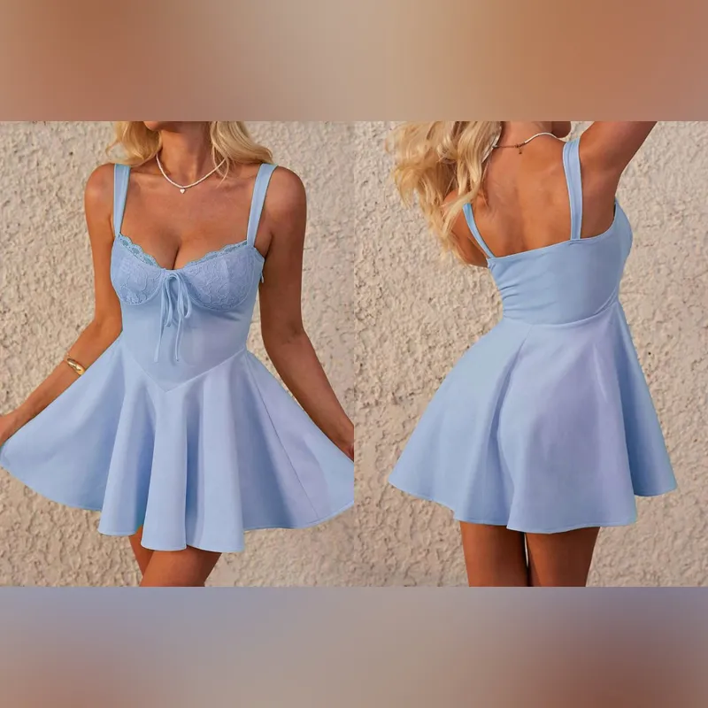 Vestido azul corte princesa