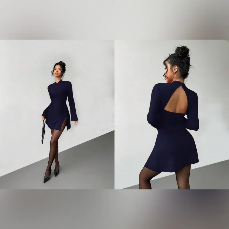 Vestido azul marino de mangas largas