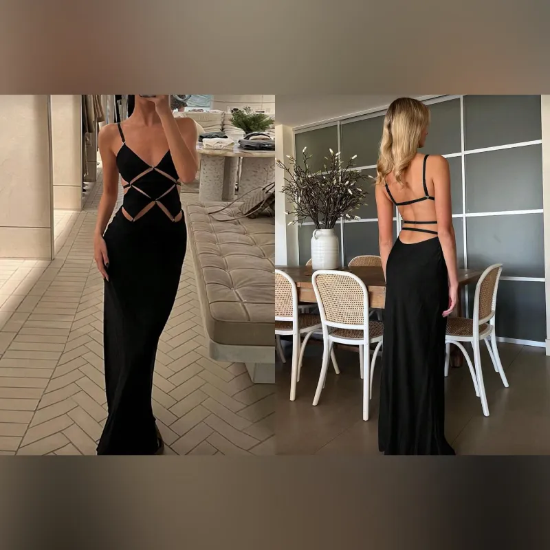 Vestido negro ajustado con escote en espalda