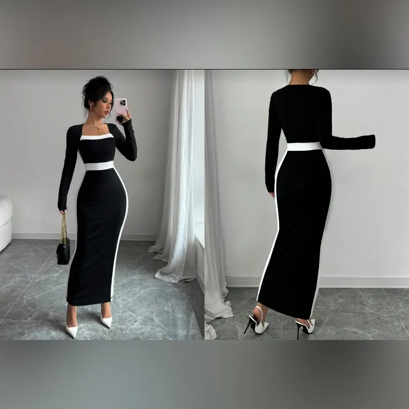 Vestido negro con listas blancas y mangas largas
