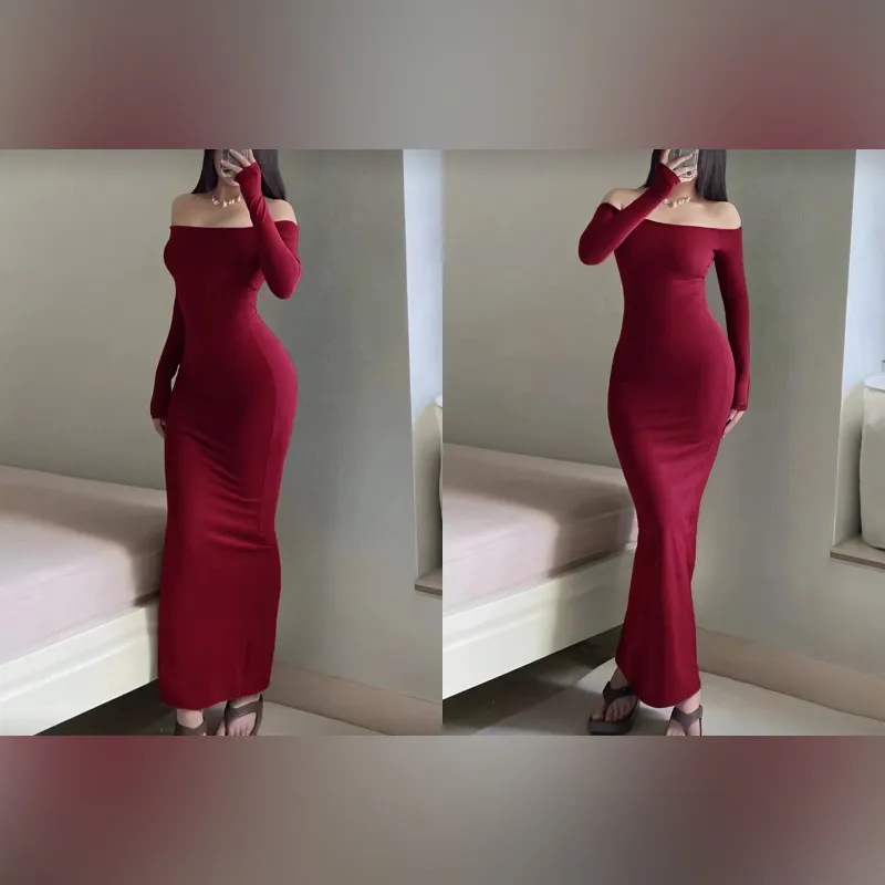 Vestido rojo ajustado de mangas largas