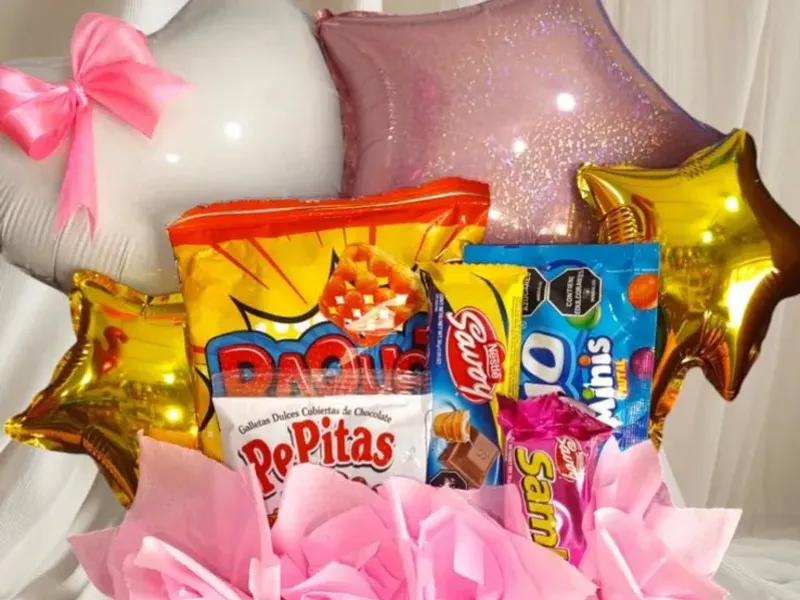 Color a elección 2 bombones Un globo metálico de corazón Una rosa Un osito