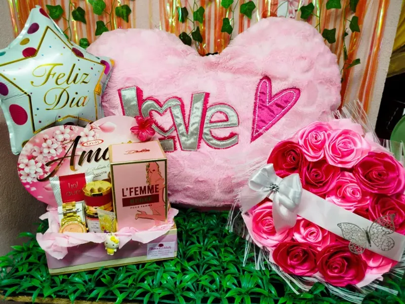 Colonia Crema Confituras Globos metálicos de corazón 4 Rosas eternas 20 margaritas