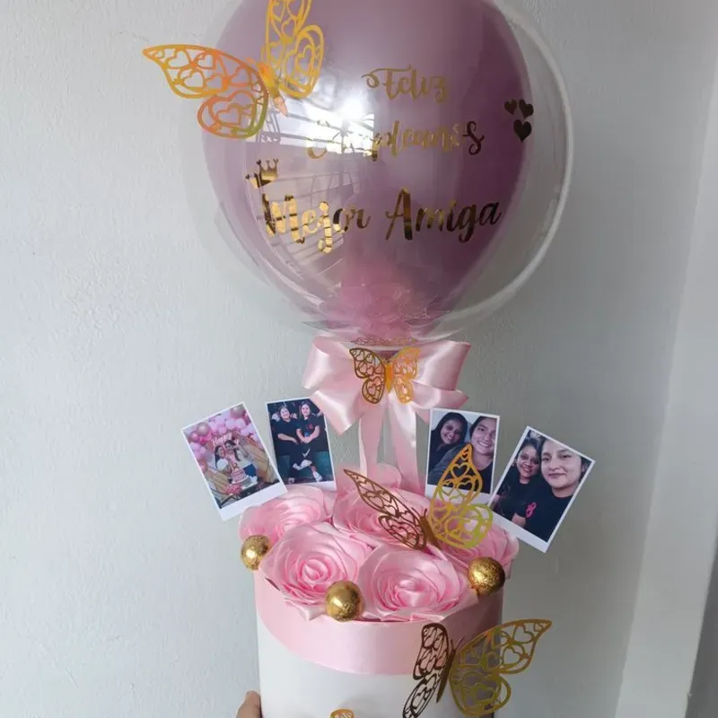 Globo burbuja con globos dentro y dedicatoria