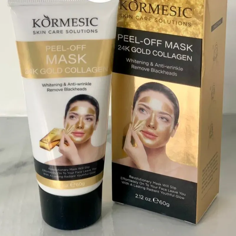 Mascarilla peel off 24K✨ (Oro y colágeno) 👉🏻60g 👉🏻Ayuda a levantar y reafirmar la apariencia de tu piel mientras añade un brillo saludable. 👉🏻Contiene ingredientes como ácido hialurónico y colágeno para ayudar a reducir la apariencia de lineas finas y arrugas. 👉🏻Hidrata profundamente y da a la piel un brillo instantáneo para aliviar el estrés. 👉🏻Minimiza los poros dilatados, dando una apariencia más suave. 👉🏻La marcarilla se puede utilizar de forma segura para todo tipo de piel e incluso en pieles sensibles. Es gratis para fragancias y colorantes