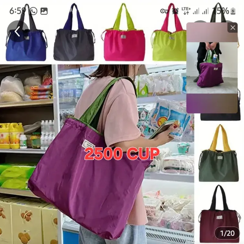 BOLSA DE COMPRAS FRESA, VERDE Y MOSTAZA. Es una Cartera Genial. Preciosos Colores. Se recoge a Monedero. Ideal para ir al trabajo.