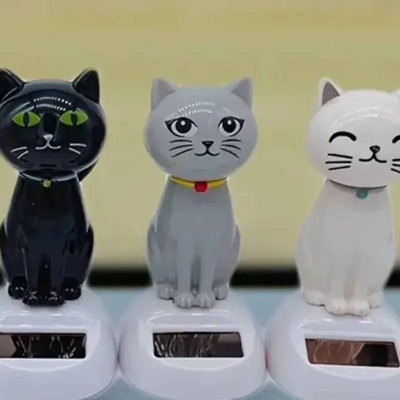 DECORACION DE AUTO GATO BLANCO CON PANEL SOLAR