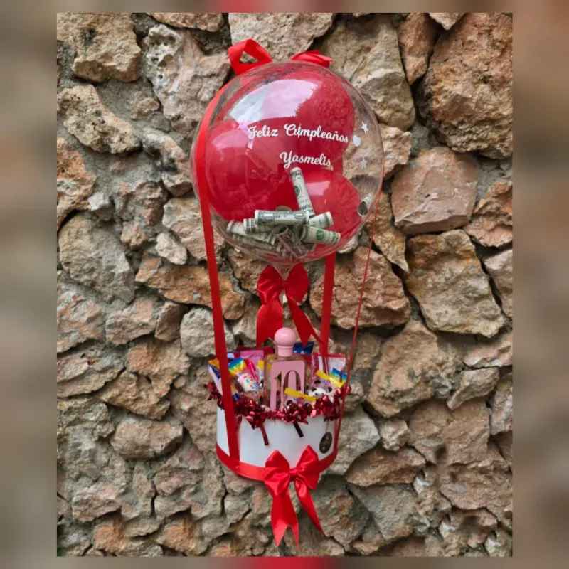 Globo burbuja con billetes dentro + chuches y perfume ...