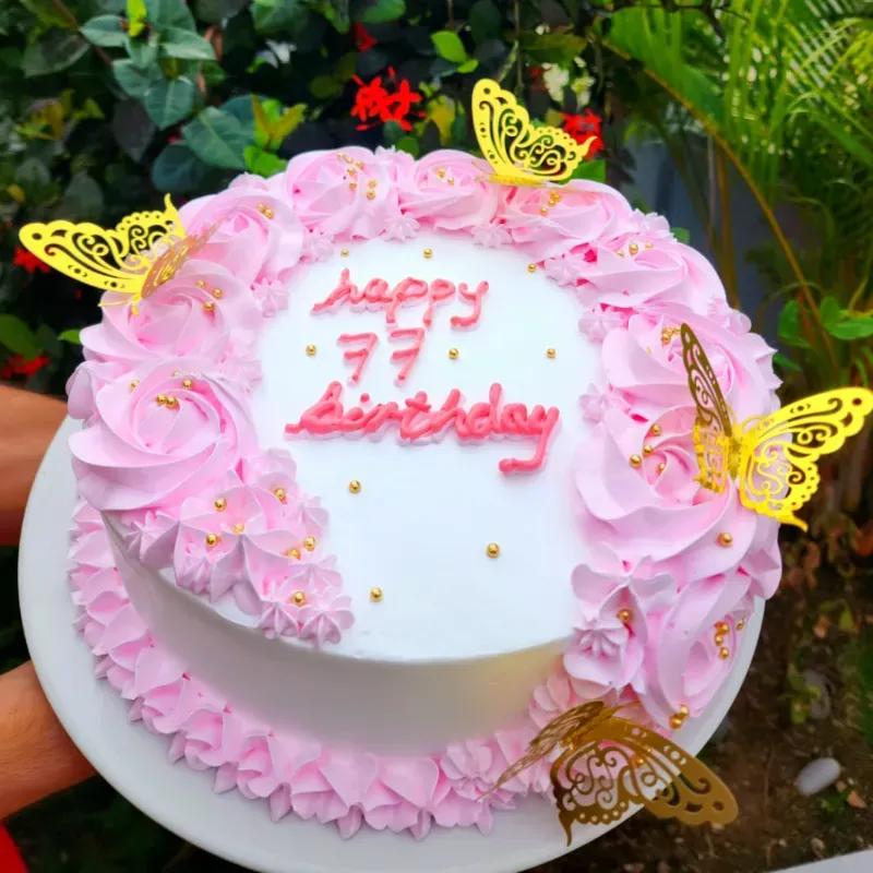 Incluye decoración con glitter comestible, perlas y topper (Happy Birthday)