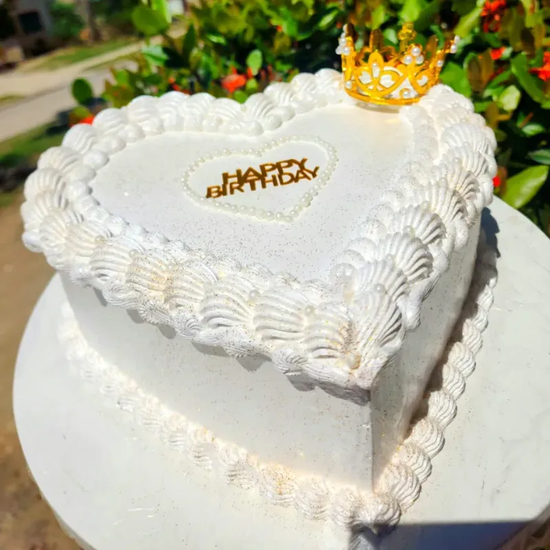 Cake en forma de corazón de 22cm, cubierto de nata, con 1 relleno y masa de vainilla.