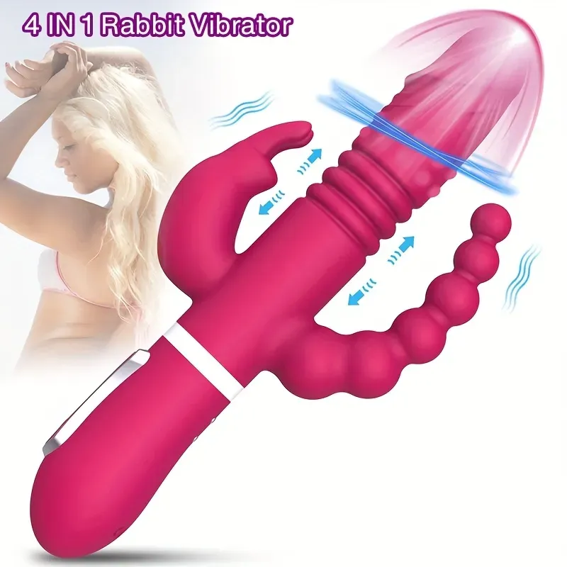 Conejito Vibrador Triple Acción + Telescópico – Placer 4 en 1