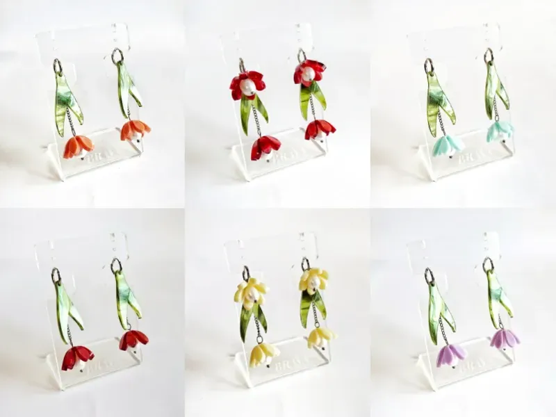 *Incluye: -Un par de argollas pequeñas plateadas (acero inoxidable hipoalergénico) -Un par de flores cortas -Un par de flores largas -Un par de hojitas verdes *Permite varias combinaciones