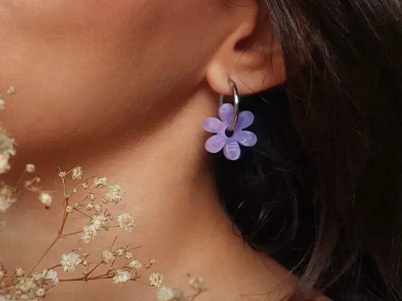1 par de argollas + 4 flores de colores a elección x 10usd