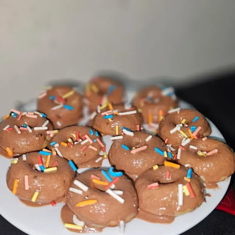 Minidonas con glaseado de chocolate. Porción una docena.