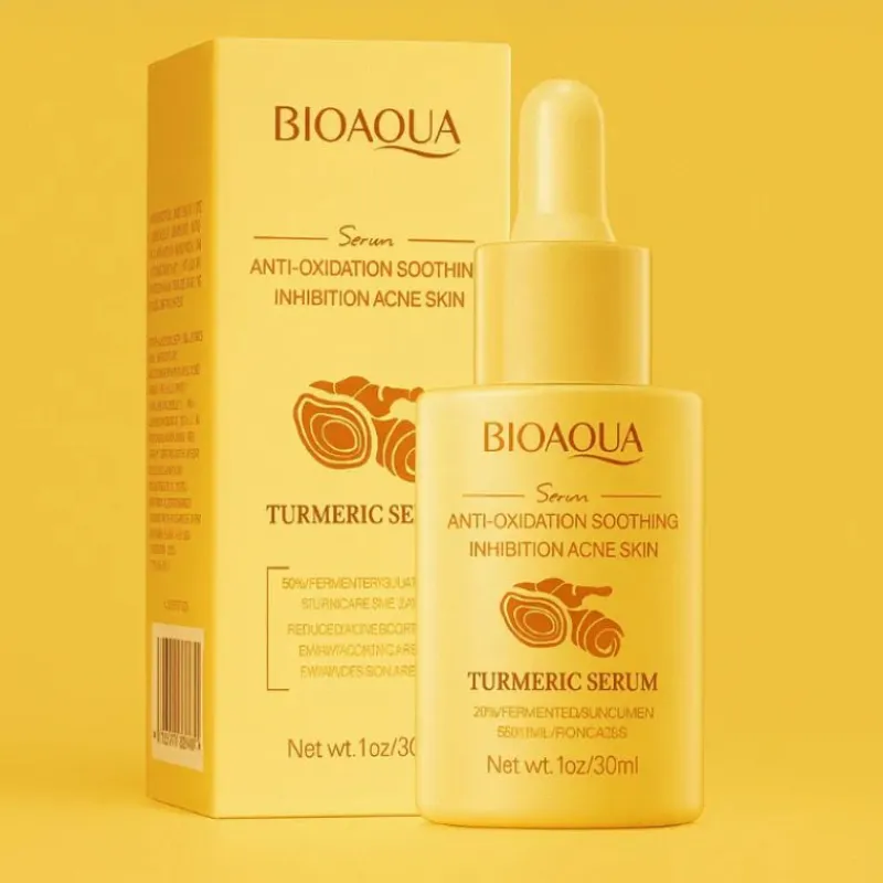 El sérum de cúrcuma de Bioaqua es una fórmula antioxidante y revitalizante que ayuda a mejorar visiblemente la luminosidad y la textura de la piel.
