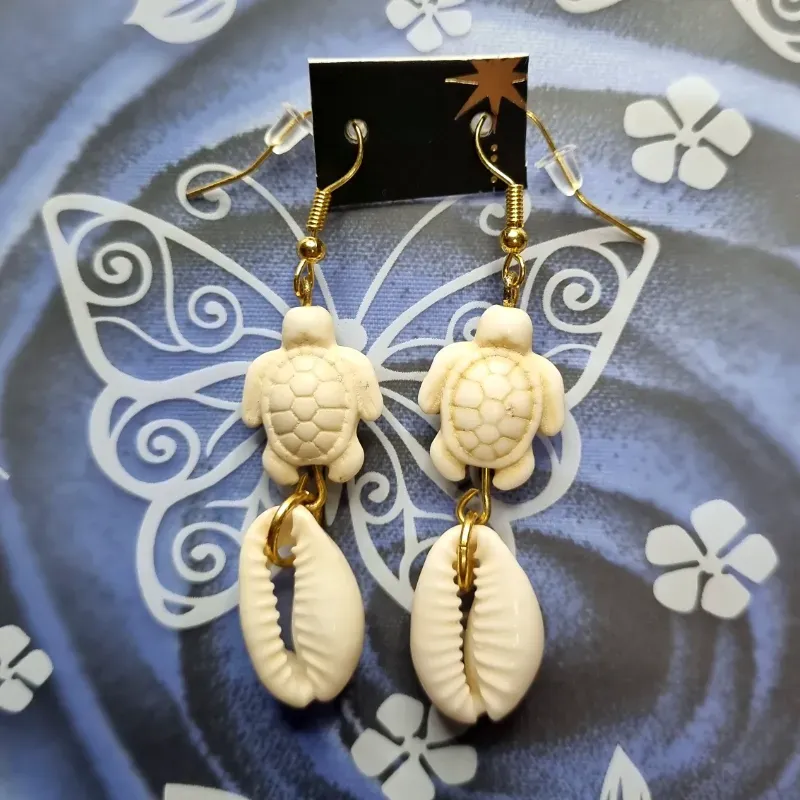 Aretes de tortuga y caracola