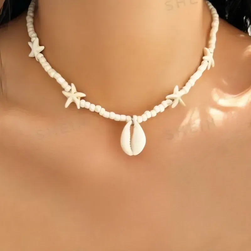 Collar de Mostacillas y Estrellas con una Caracola