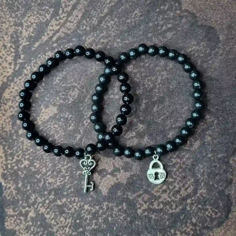 Pareja de pulseras de perlas de 6mm con llave y candado