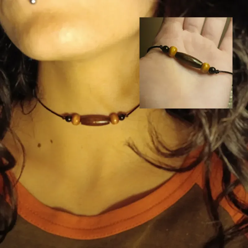 Gargantilla de hilo y madera 🪵
