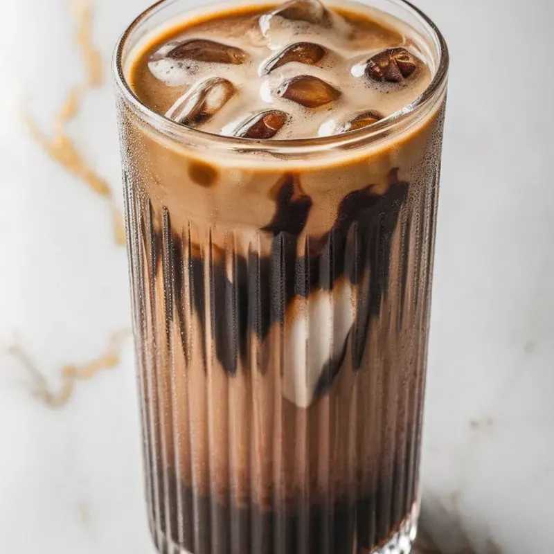 CAFร FRIO CON LECHE CREMOSA Y CHOCOLATE,CON UNA CONFITURA DE LA CASA