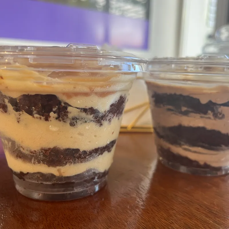 Vasos fríos de dulce de leche condensada chocolate o crema de vainilla con almendras