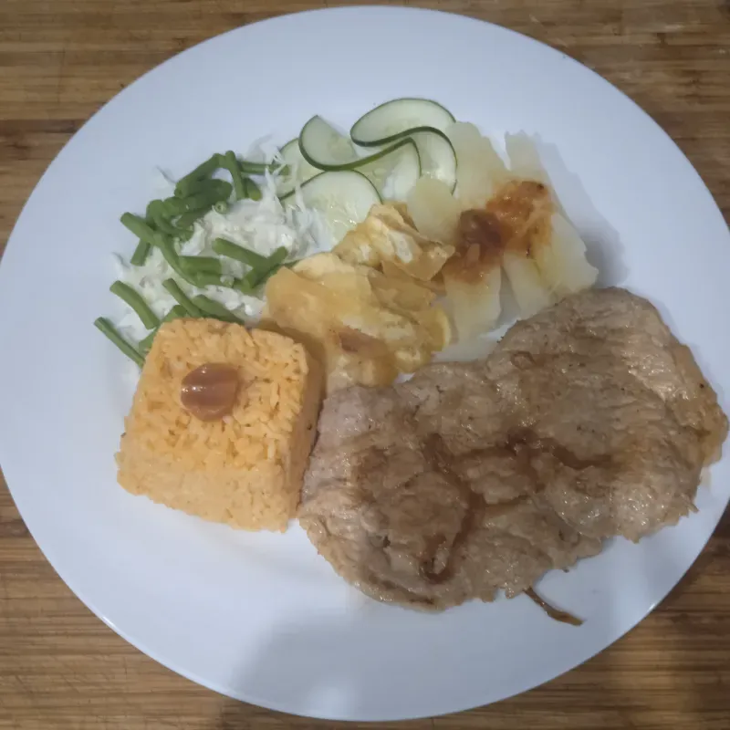 Lomo de cerdo grille, arroz, vianda y vegetales