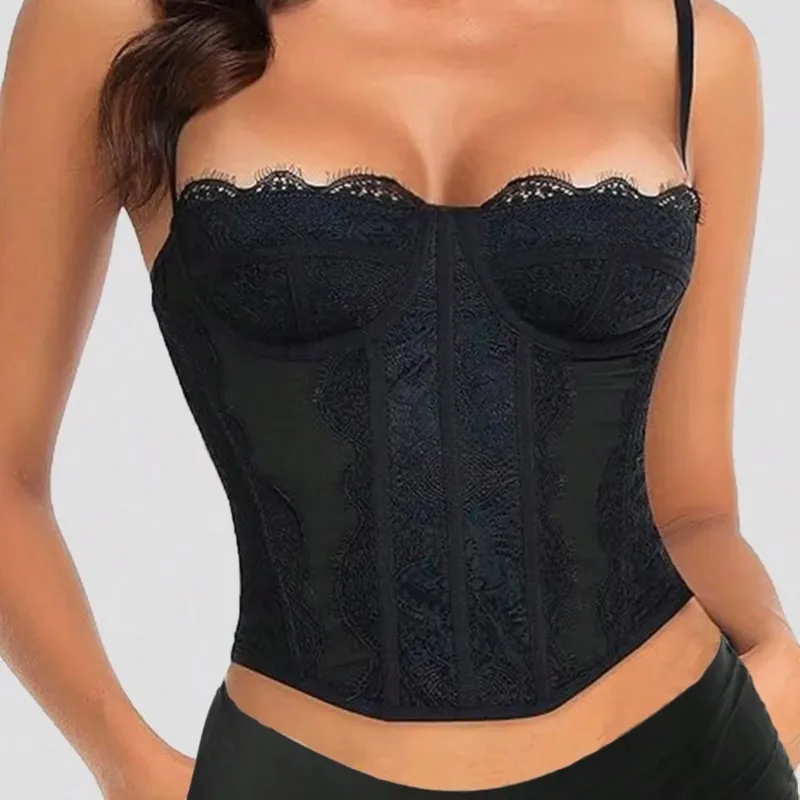 Cuenta con copas con soporte, delicado detalle ondulado en el escote y tirantes finos ajustables. Su confección estiliza la cintura y brinda un ajuste cómodo y seguro.