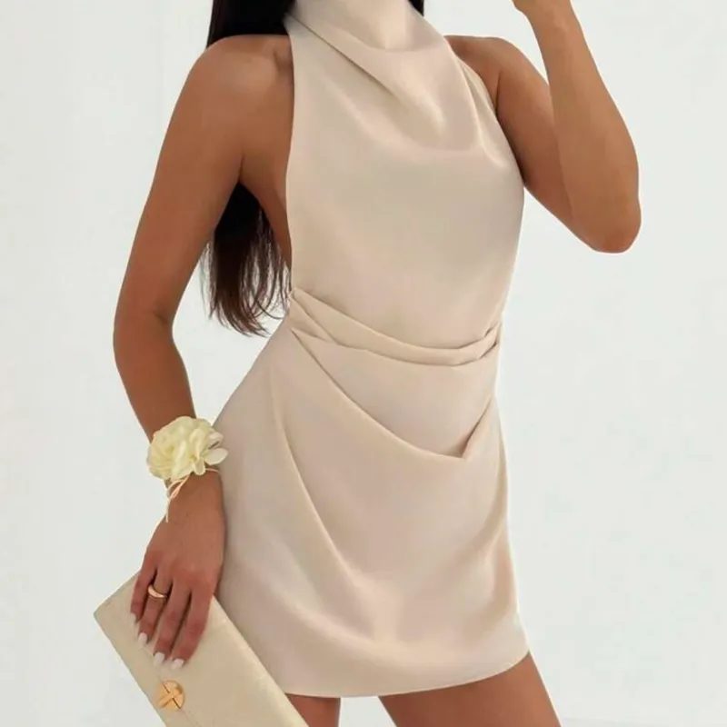 Vestido mini plisado con diseño minimalista y alta gama, sin espalda
