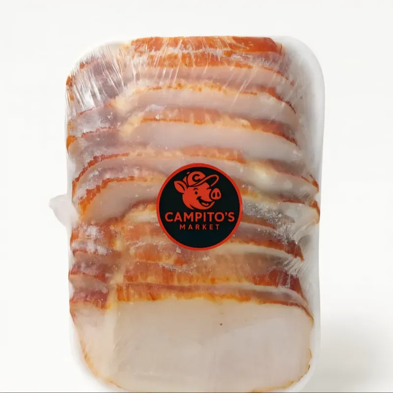 Lomo ahumado, deshuesado y sin grasa, con el mayor cuidado en cocción. Bandeja retractilada de 2 lb (1 kg), sellada con film, lista para refrigeración o congelación.