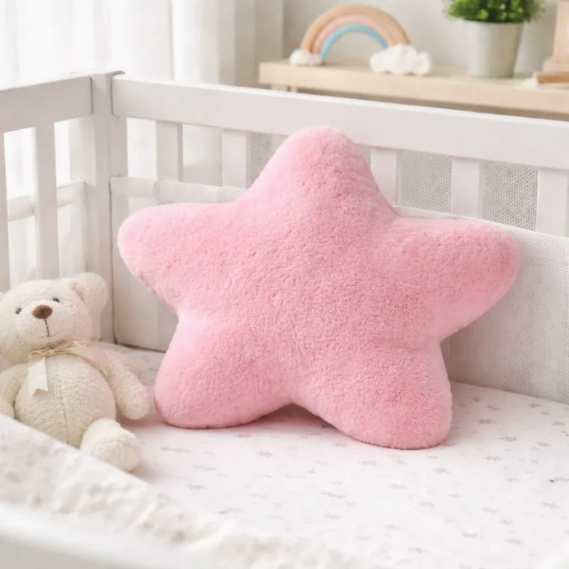 Almohada de Peluche para Cuna de Bebe forma de Estrella Rosa.