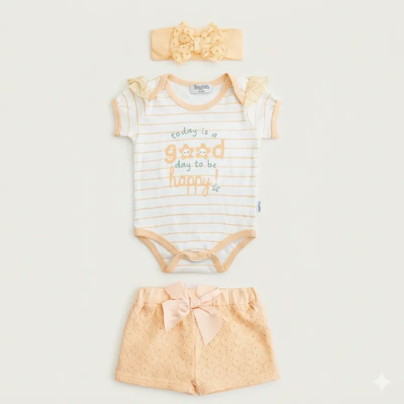 Conjunto Amarillo de Body , Short y Cinta para el cabello