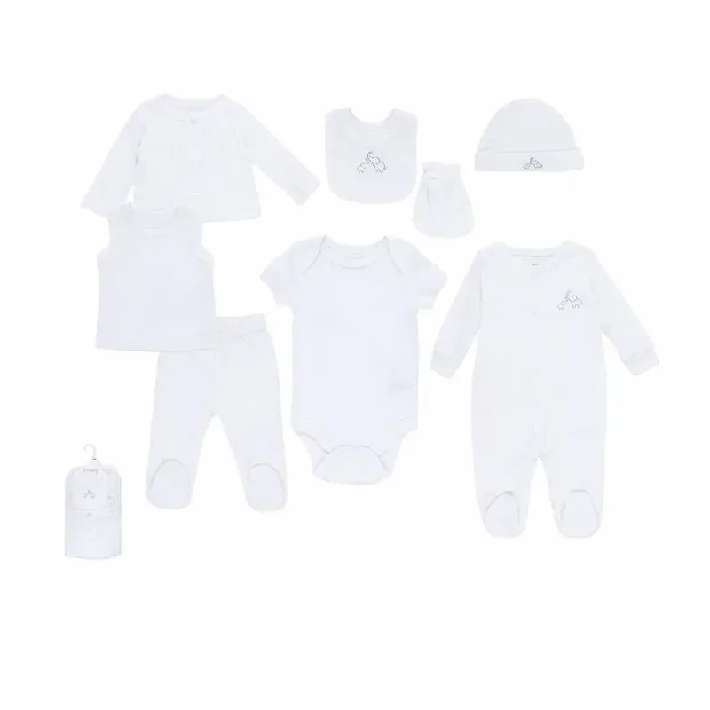 Conjunto Blanco con Body, Pijama, Pantalón, Abrigo y Accesorios para Bebé