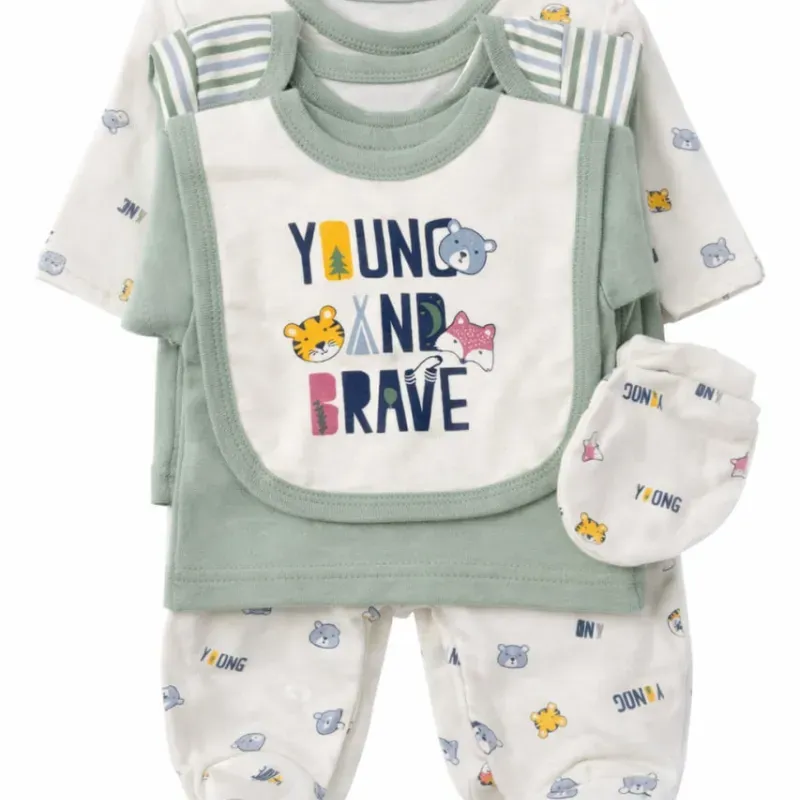 Conjunto Blanco y Verde con Camisetas, Pantalón y Accesorios de Animales para Bebé