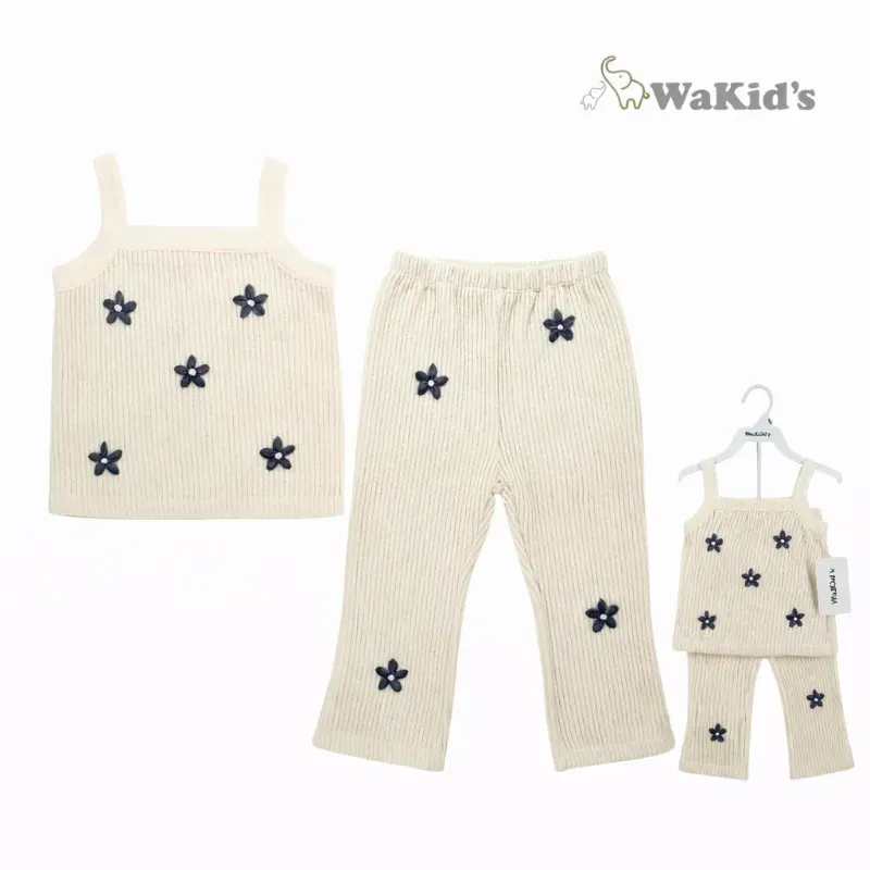 Conjunto de blusa y pantalon beige con flores