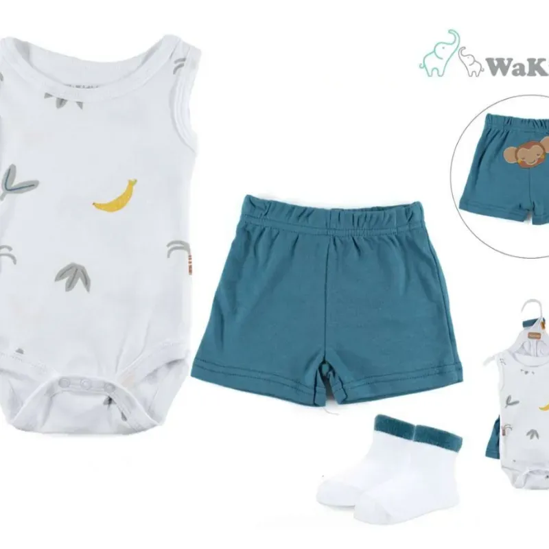 Conjunto de Body, Short y Medias para Bebé Temática Mono