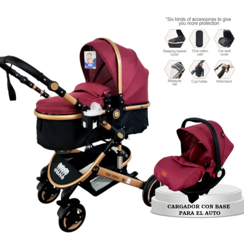 Conjunto de Coche y Silla de Auto Reversible Vino