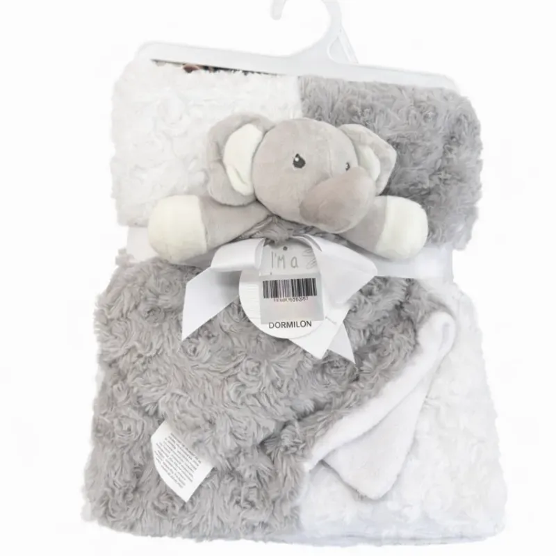 Conjunto de Manta Gris con Elefante para Bebé