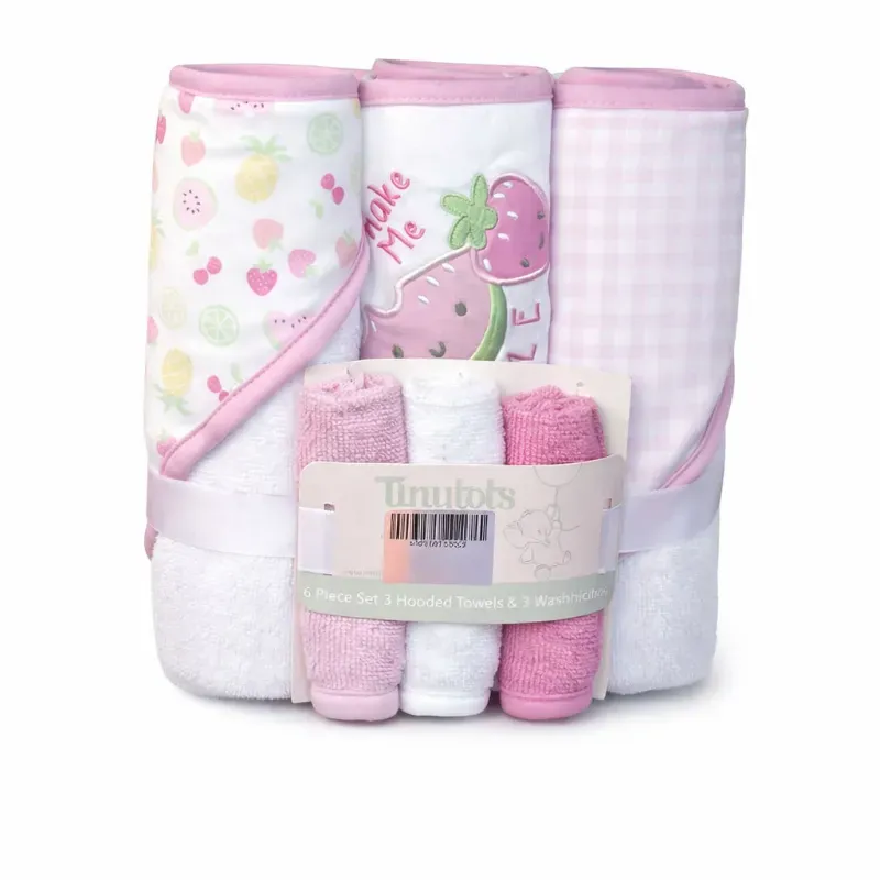 Conjunto de Toallas con Capucha y Toallitas Rosadas con Frutas para Bebé