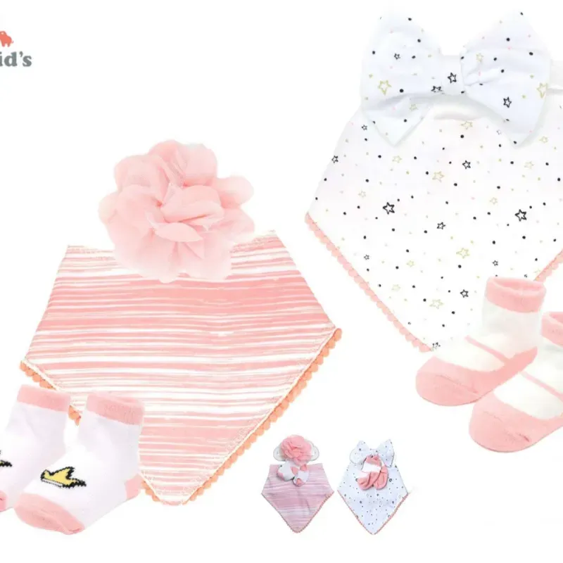Conjunto Infantil con Babero y Medias con Estampados Simples