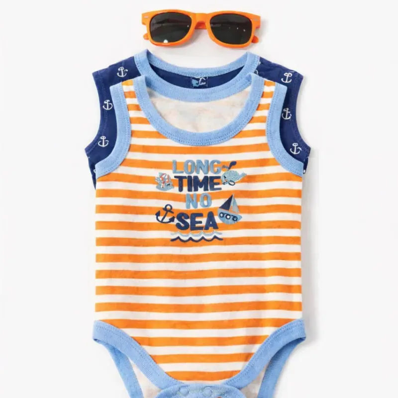 Conjunto Naranja y Azul con Body Náutico y Gafas para Bebé