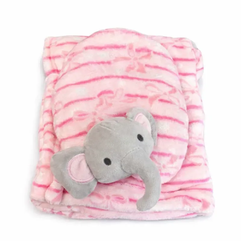 Conjunto Rosa con Manta y Peluche Elefante para Bebé