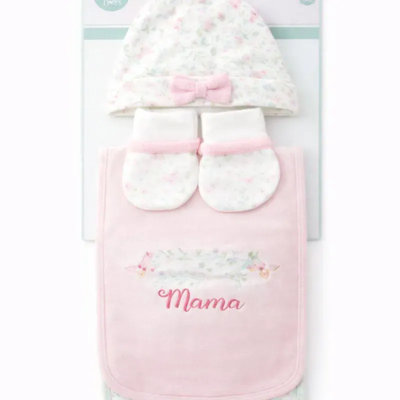 Conjunto Rosa Pastel con Gorro, Medias y Babero para Bebé