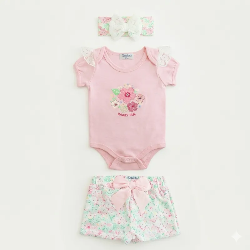 Conjunto Rosado de Body , Short y Cinta para el cabello