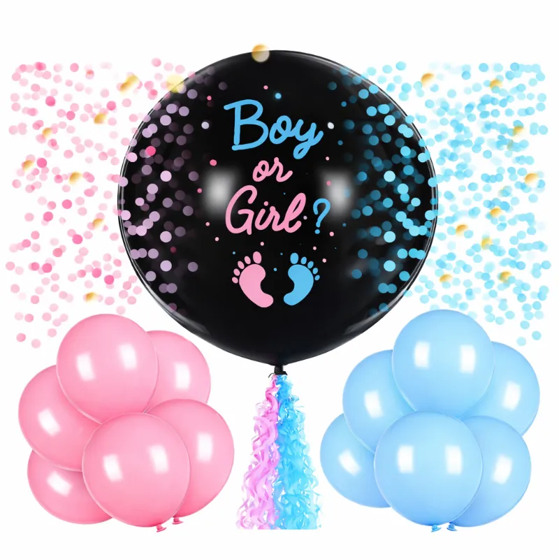 Globo de 36 pulgadas+ Confeti redondo, Pies Azules o Rosa para Revelación de Sexo