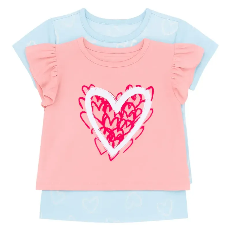 Set de Blusas Rosa y Celeste con Corazones para Bebé
