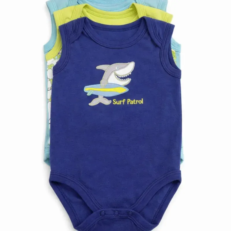 Set de Bodys Azul, Celeste y Verde con Estampado de Tiburón para Bebé