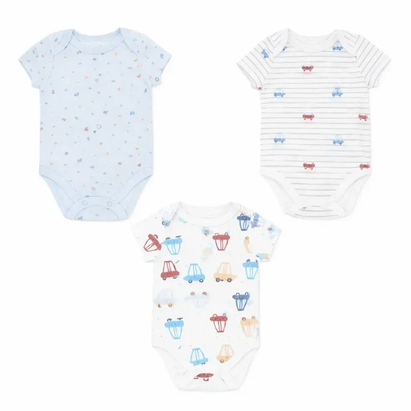 Set de Bodys Azul y Blanco con Estampado de Carros para Bebé