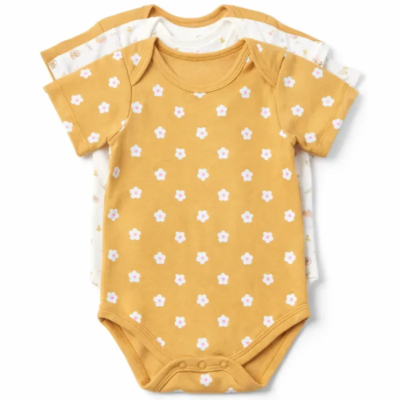 Set de Bodys Amarillo, Blanco y Estampados Florales para Bebé