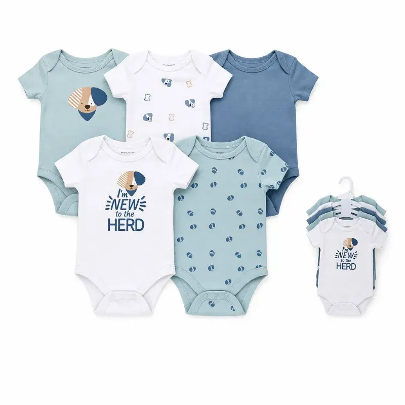 Set de Bodys Azul, Blanco y Verde con Perritos para Bebé