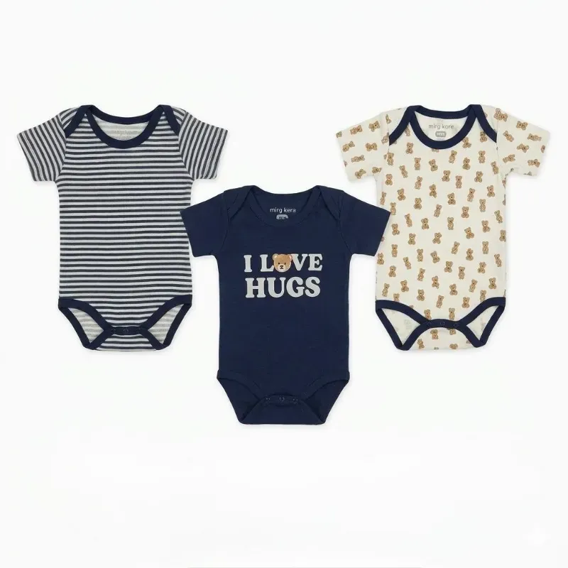 Set de Bodys para Bebé Temática Rayas/Azul oscuro/Osos